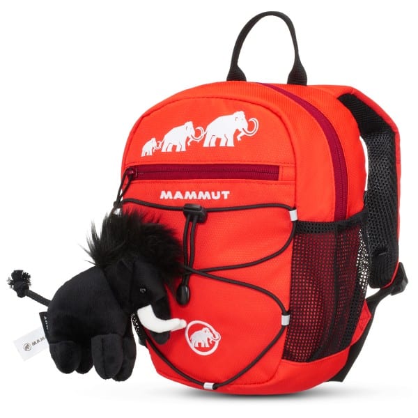 Kleiner Tagesrucksack mit bewährter Unterteilung, für 2–9-jährige Kinder je nach Volumen. Inklusive Mammut-Stofftier.