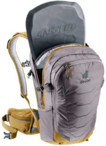 Weniger ist mehr – der gewichtsoptimierte, TÜV/GS zertifizierte Protektor-Rucksack Flyt SL ist auf die essenziellen Features reduziert. So sorgt ein leichter, herausnehmbarer Rückenprotektor für Schutz bei Stürzen. Zur Fixierung des Helms gibt es Clips außen am Rucksack (Halbschalen-Helm) oder seitliche Kompressionsriemen (Fullface-Helm). Zwei verstaubare Riemen am unteren Ende des Rucksacks ermöglichen zudem die Befestigung der Bike-Protektoren. Der speziell für Frauen verkürzte Rücken mit dem bewährten, leichten Airstripes-System sorgt zusätzlich für ausreichende, angenehme Belüftung.