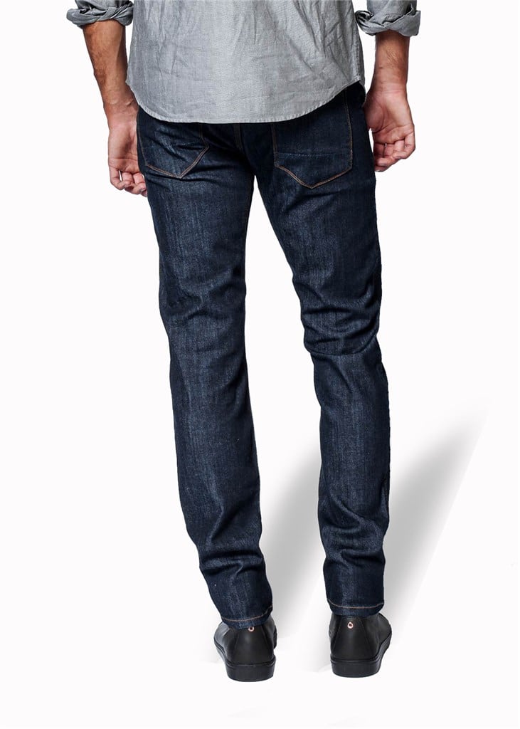 Diese klassische Slim Fit 5-Pocket in einer galactic Indigo-Waschung verfügt über den charakteristischen DUER Gusset und Verwaschungen.