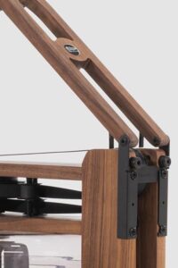 Das Rahmengestell wird aus Vollkern-Holz gefertigt. Bei den Edelstahl Modellen aus Edelstahl und bei den Metallgeräten aus pulverbeschichtetem Metall. Die Verbindung aller Teile ist einfach aber sehr robust. Aus ethischen Gründen werden nur Hölzer von natürlich schnell nachwachsenden und nicht gefährdeten Baumbeständen eingesetzt.